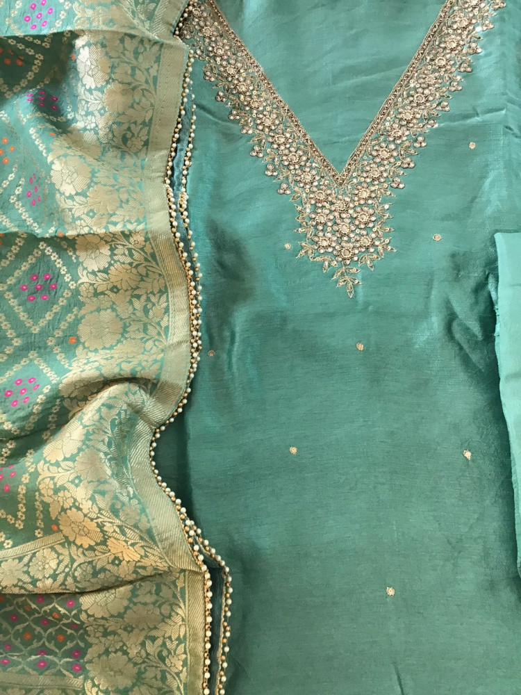 Image of Pure Upada Embroidered Suit - Pink