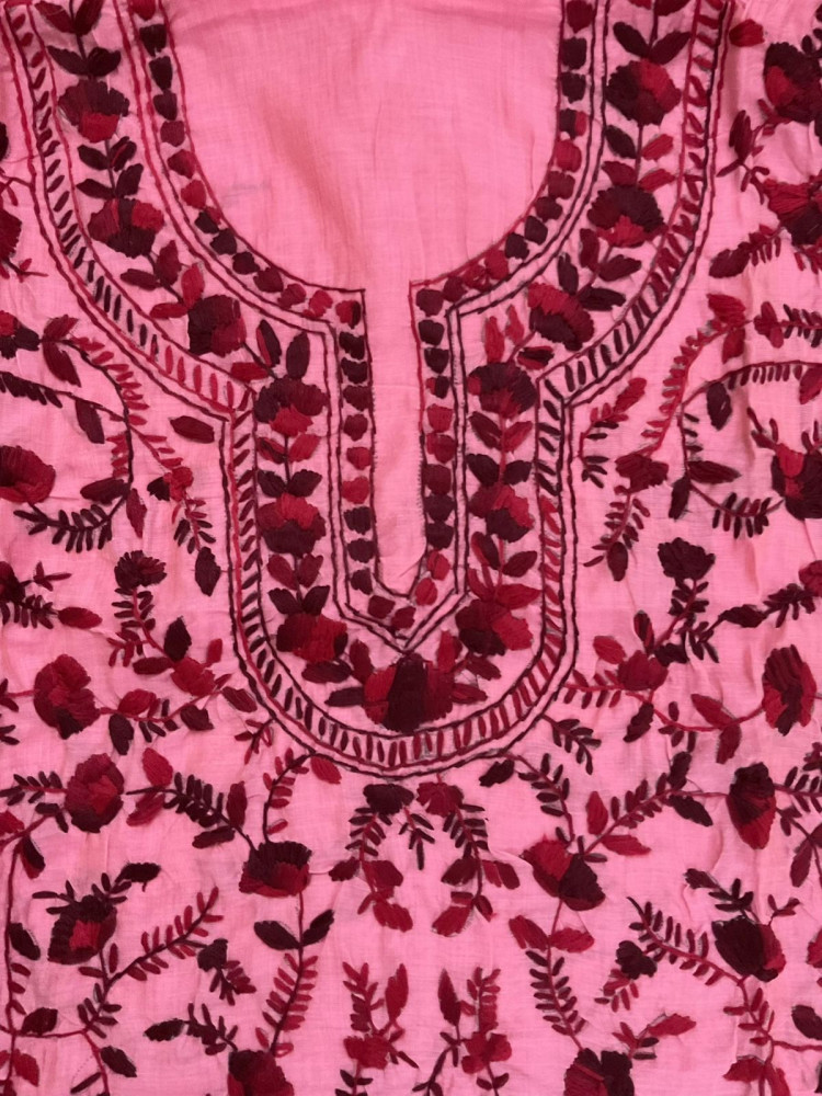 • Soft Chanderi Embroidered Only Kurta Fabric - Pink