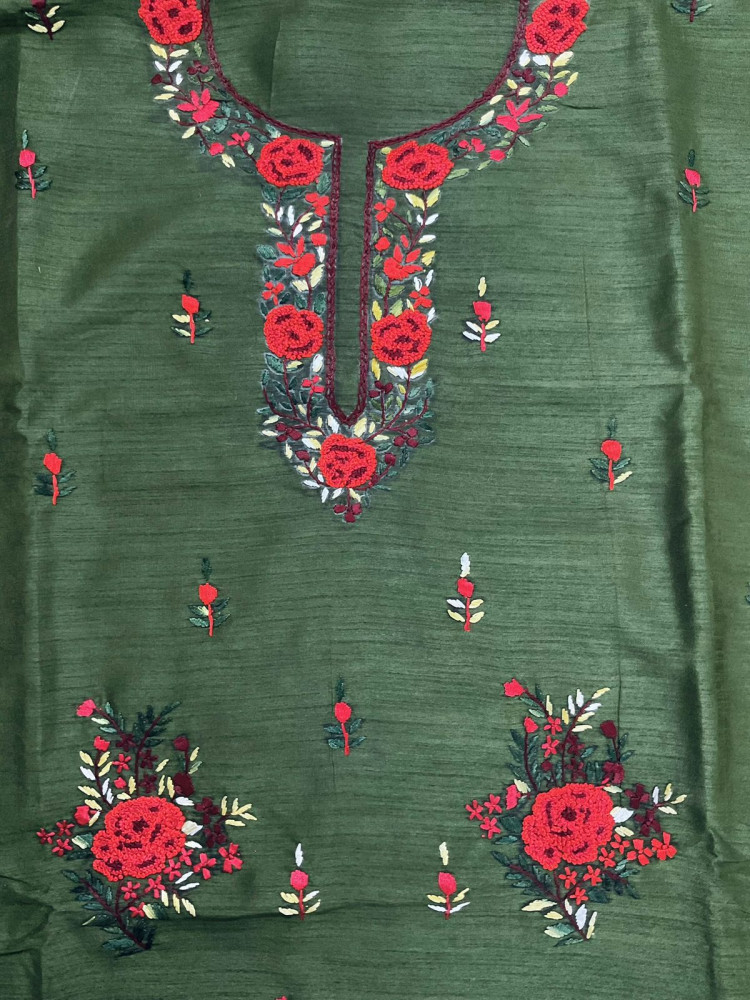 • Soft Fine Tussar Embroidered Only Kurta Fabric - Green