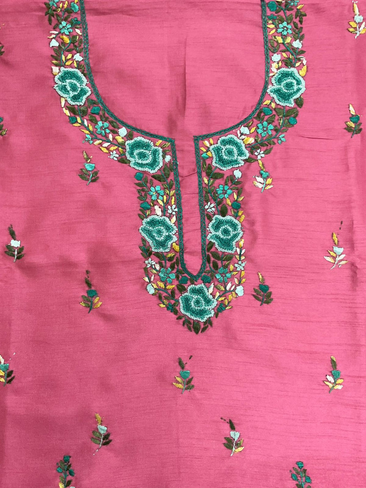 • Soft Fine Tussar Embroidered Only Kurta Fabric - Pink